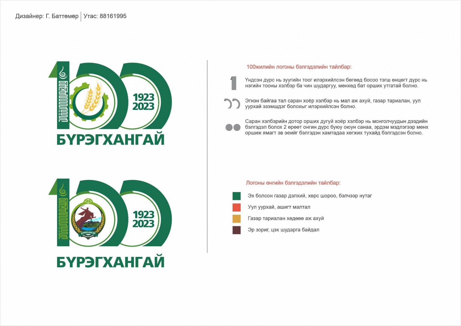 Бүрэгхангай сум байгуулагдсаны түүхт 100 жилийн ойн баярыг угтаж Сумын онцлог, уламжлал шинэчлэлийн утга санааг бэлгэдсэн таваас дээшгүй элемент агуулсан, таваас ихгүй өнгө хосолсон энгийн өгүүлэмжтэй, Мал аж ахуй, Газар тариалан, Уул уурхай хослон хөгжсөн утга агуулга бүхий лого, хүндэт тэмдгийн шинэ загвар бүтээх уралдааны удирдамж гарган шалгаруулсан.