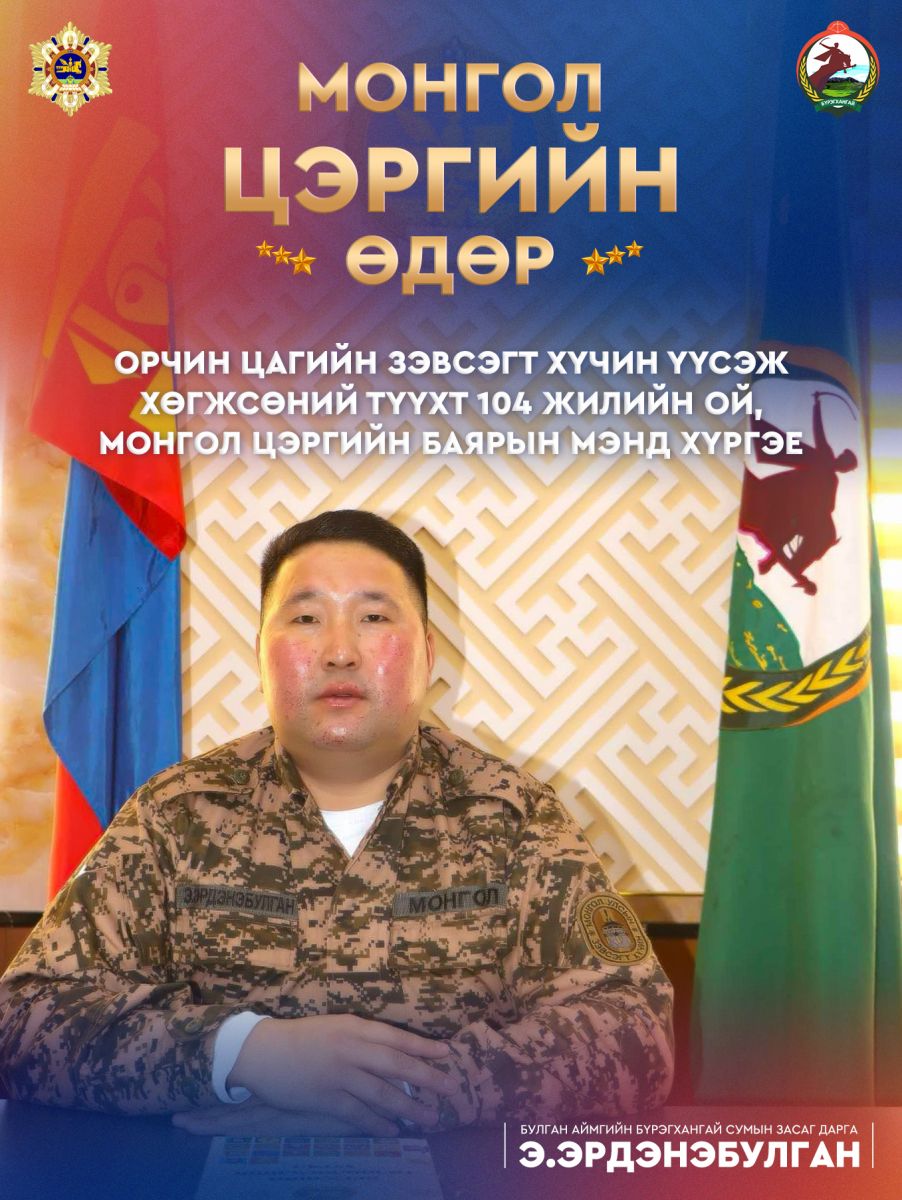 Алтангадас одонт Бүрэгхангай сумынхаа эрэлхэг дайчин эрчүүддээ Орчин Цагийн Зэвсэгт хүчин үүсэж хөгжсөний түүхт 104 жилийн ой, Монгол Цэргийн өдрийн баярын мэнд дэвшүүлж амьдралднь аз жаргал, эрүүл энх, сайн сайхан бүхнийг хүсэн ерөөе