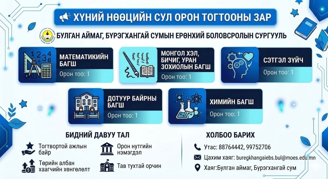 БҮРЭГХАНГАЙ ЕБС сул орон тооны мэдээлэл