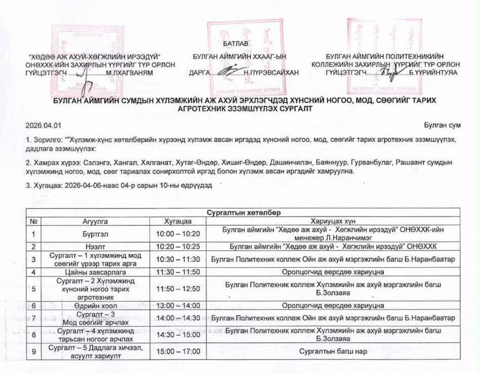 Булган аймгийн Бүрэгхангай сум ЗДТГ