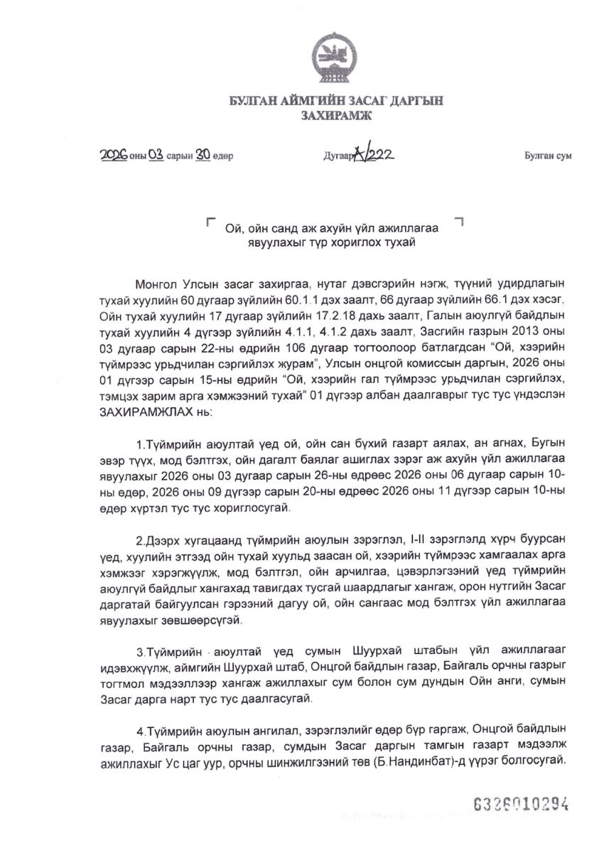 ЗДТГ-ын даргын тушаал
