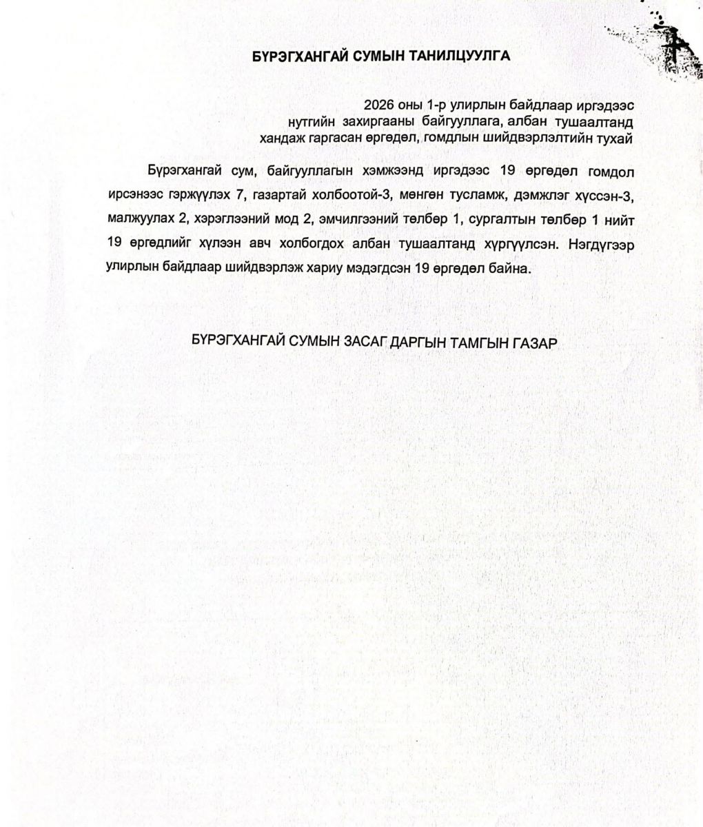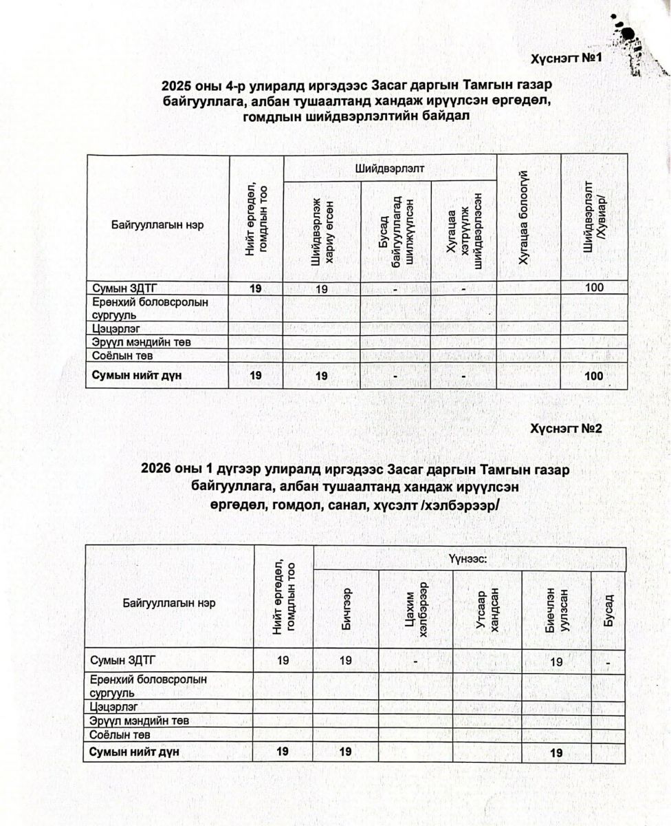 2026 ОНЫ НЭГДҮГЭЭР УЛИРЛЫН ӨРГӨДӨЛ, ГОМДЛЫН ШИЙДВЭРЛЭЛТИЙН БАЙДАЛ